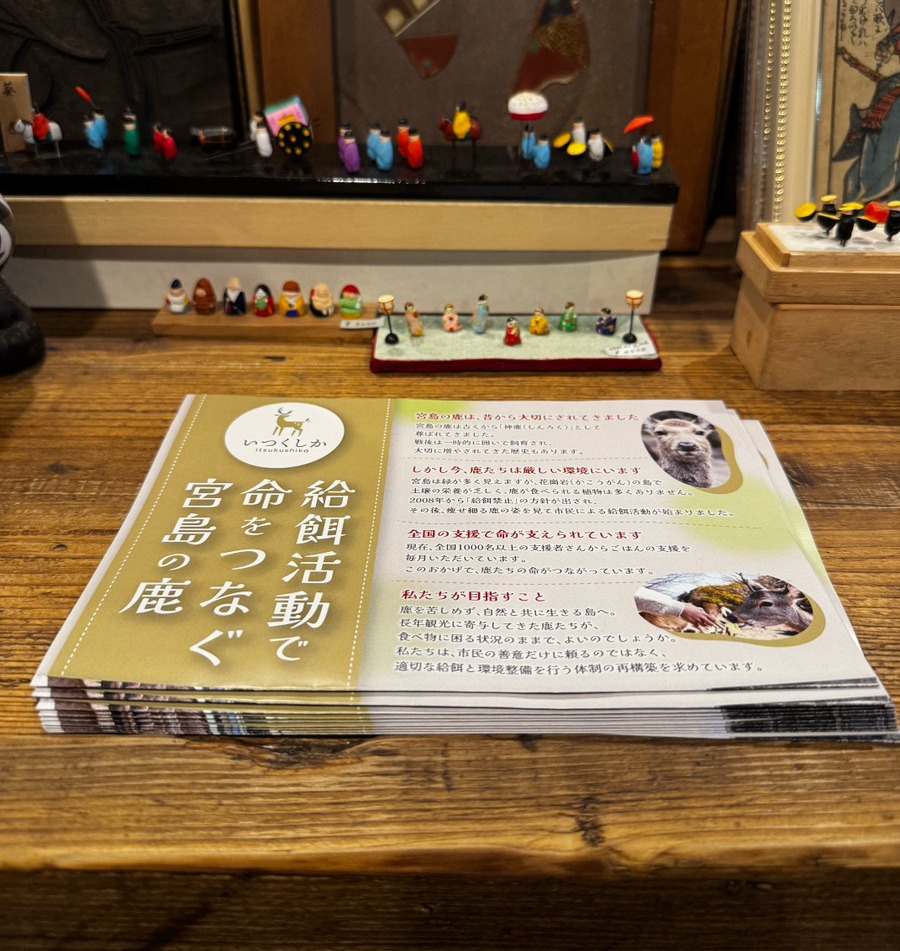 いつくしかのチラシが完成しました(宮島の鹿さんの実情)