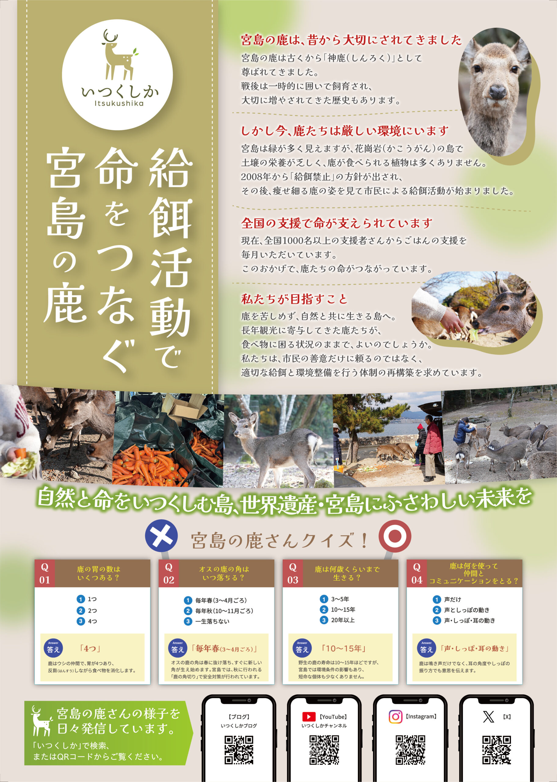 宮島の鹿さん給餌活動「いつくしか」のチラシが、ついに完成しました。