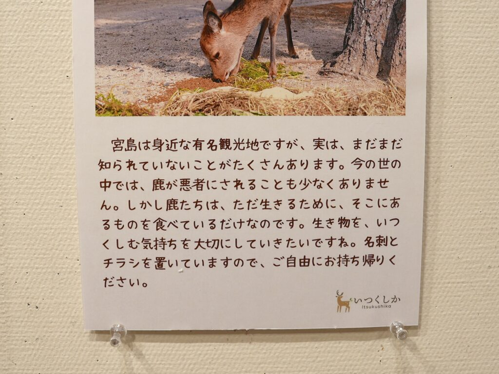 この展示会を主催してくださった無有無さんは、宮島の鹿さんの給餌活動を私たちとは別日に、月二回も1年以上継続してくださいました。
